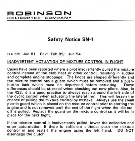 Avis de sécurité de l'entreprise Robinson Helicopter