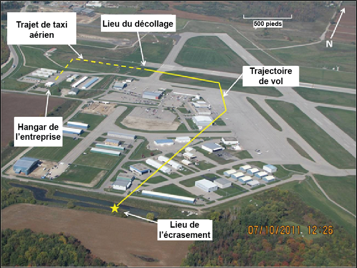 Le vol devait être un exercice de navigation élémentaire dans une zone s'étendant jusqu'à une distance d'environ 28 miles au sud-ouest de l'aéroport international de la région de Waterloo, en Ontario (CYKF). La vérification avant le vol, le démarrage et le point fixe ont été effectués près du hangar de la compagnie, situé à l'ouest de la tour de contrôle de CYKF. Des bâtiments obstruent la vue entre la tour de contrôle et la zone du hangar; la procédure de la compagnie consiste donc à déplacer l'hélicoptère (taxi aérien) après le point fixe vers une aire de départ située au sud de la trajectoire d'approche de la piste 08.
