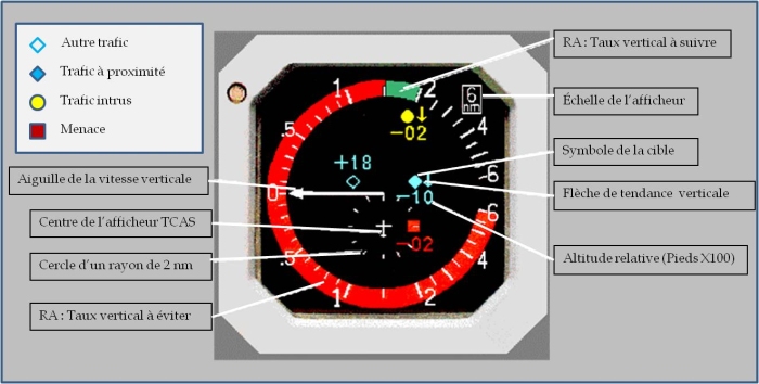 - la description des symboles apparaissant sur l'afficheur TCAS;