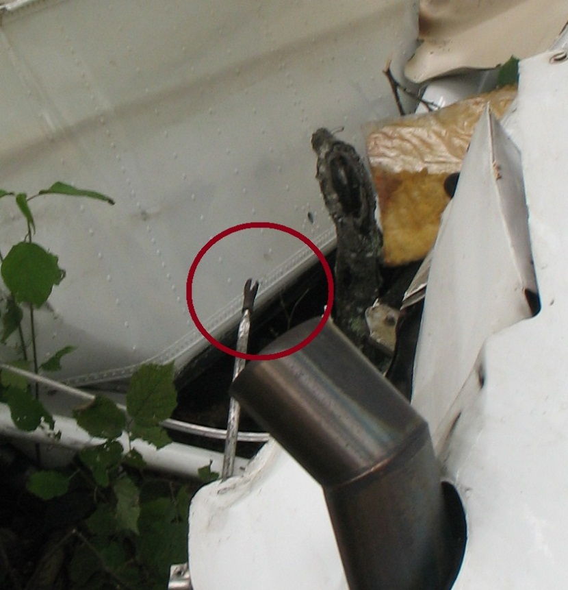 - La batterie et le relais principal ont été arrachés du fuselage dans l'écrasement, ce qui a coupé le courant électrique et a peut-être réduit les risques d'incendie après impact.