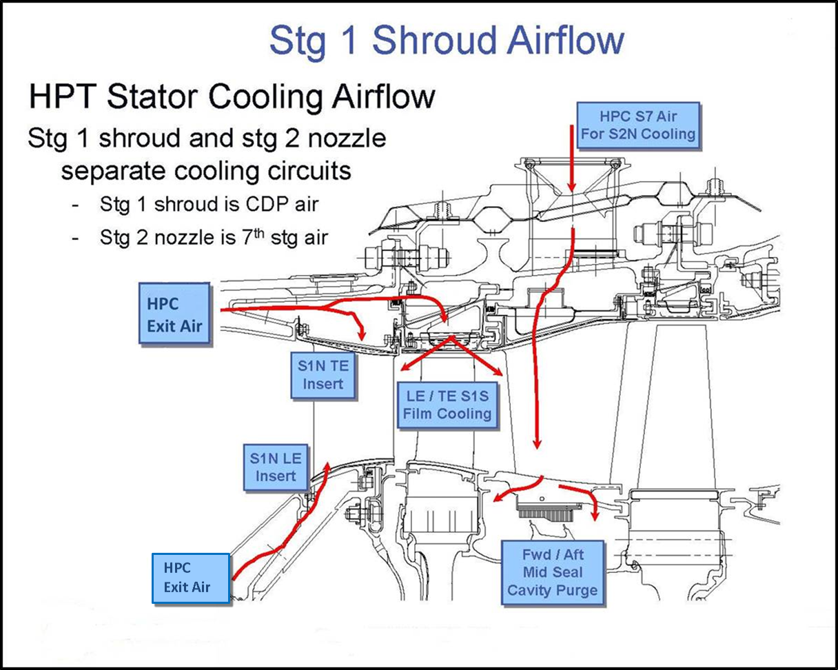 | Stg 1 shroud is CDP air | Couronne de l'étage 1 : air de pression de sortie compresseur |