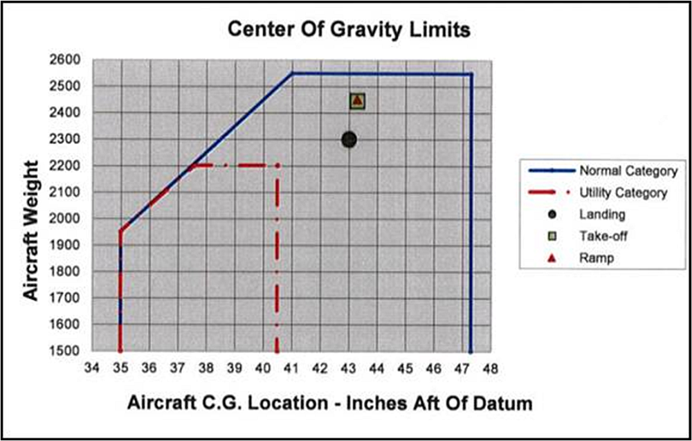 La masse maximale autorisée au décollage pour ce type d'avion dans la catégorie utilitaire est de 2200 livres, et les limites du centre de gravité se situent entre 35 pouces et 40,5 pouces derrière le point de référence. Dans la catégorie normale, la masse maximale au décollage de l'avion est de 2550 livres, tandis que ses limites de centre de gravité se situent entre 35 pouces et 47,3 pouces derrière le point de référence.