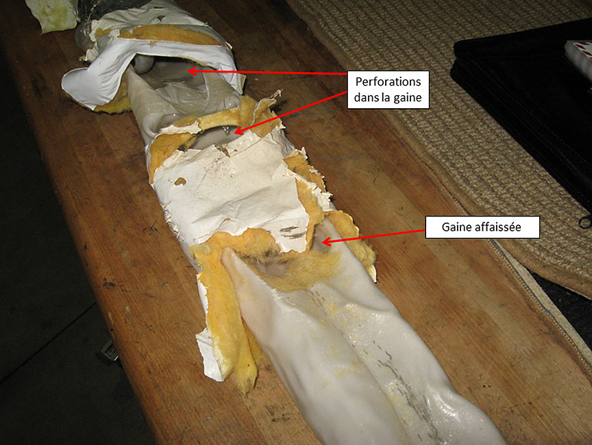 - Il n'a pas été possible de déterminer si les dommages aux gaines d'air chaud avaient été causés durant l'événement en cause ou s'ils avaient été causés par la surchauffe répétée du système et/ou à une exposition à la chaleur environnementale.