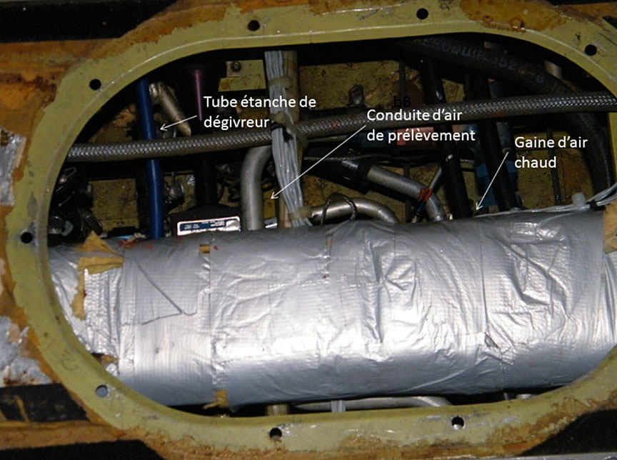 - La chaleur produite par la conduite d'air de prélèvement non isolée a eu une incidence sur l'intégrité des gaines d'air et du tube de dégivreur à cause de la proximité de ceux-ci.