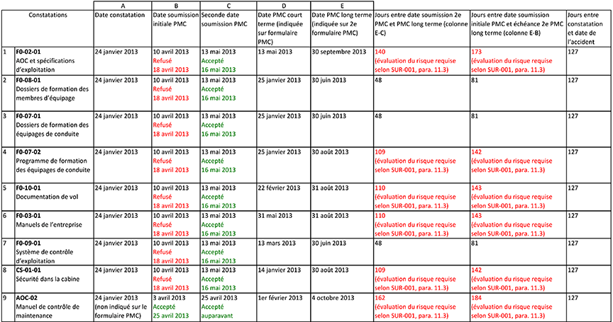 Le 30 mars 2013, alors qu'il se trouvait toujours à Whippany, le PVA a informé par courriel le gestionnaire des opérations et le CP adjoint que son vol de contrôle s'était bien déroulé. Dans ce même courriel, le PVA a fait savoir qu'il avait terminé les CCP du capitaine et de son partenaire de formation, en ajoutant qu'ils avaient l'un et l'autre reçu 2 cotes 2. Le PVA a informé le gestionnaire des opérations et le CP adjoint que l'IPE avait noté que le capitaine avait besoin de formation additionnelle sur les SOP de la compagnie.