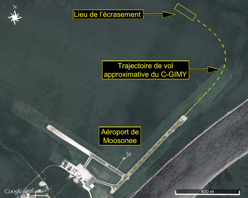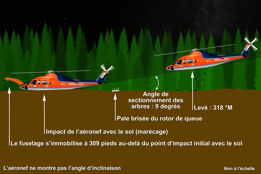 Le 31 mai 2013, vers 0 h 11, heure avancée de l'Est, l'hélicoptère Sikorsky S-76A (immatriculé C-GIMY, numéro de série 760055), effectuant le vol LifeFlight 8 selon les règles de vol à vue, a décollé de nuit de la piste 06 à l'aéroport de Moosonee (Ontario) à destination de l'aéroport d'Attawapiskat (Ontario), avec 2 pilotes et 2 ambulanciers paramédicaux à bord. Alors que l'hélicoptère franchissait les 300 pieds au-dessus du sol pour atteindre son altitude de croisière prévue de 1000 pieds au-dessus du niveau de la mer, le pilote aux commandes a amorcé un virage à gauche en direction de l'aéroport d'Attawapiskat, situé à environ 119 milles marins au nord-ouest de l'aéroport de Moosonee. Vingt-trois secondes plus tard, l'hélicoptère a heurté des arbres puis a percuté le relief d'une zone broussailleuse et marécageuse. L'aéronef a été détruit par la force de l'impact et l'incendie qui a suivi. Le système de suivi par satellite de l'hélicoptère a transmis un message de décollage puis est devenu inactif. Le système de recherche et sauvetage par satellite n'a détecté aucun signal de la radiobalise de repérage d'urgence. Vers 5 h 43, un aéronef de recherche et sauvetage a découvert l'endroit où l'hélicoptère s'était écrasé, à environ 1 mille marin au nord-est de la piste 06, et a déployé des techniciens en recherche et sauvetage. Toutefois, il n'y a eu aucun survivant.