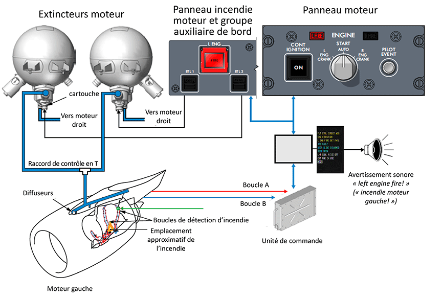 - Si on ne décharge pas les bouteilles extincteurs des fuseaux moteurs en cas d'incendie, il y a un risque accru qu'un incendie se propage et devienne incontrôlable.