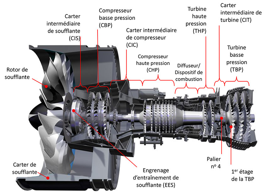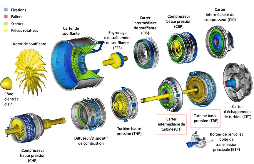 Les moteurs de la famille PW1500G sont de construction modulaire (figure 9). Leurs ensembles tournants sont interreliés de la façon suivante :