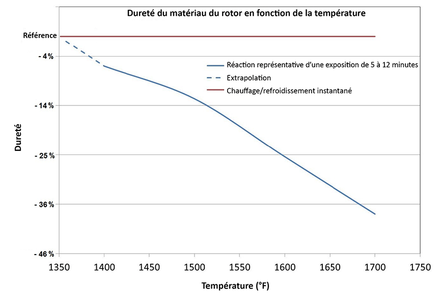 La possibilité d'un arrêt à chaud sans période de refroidissement n'a pas été prise en compte dans cette évaluation, car les instructions d'exploitation initiales exigeaient une période de refroidissement de 10 minutes (en dessous de N2 = 70 %) avant l'arrêt, et ce, à deux fins : éviter un démarrage ultérieur rotor arqué et garantir le maintien de la température des parois en dessous du seuil thermique de calaminage.