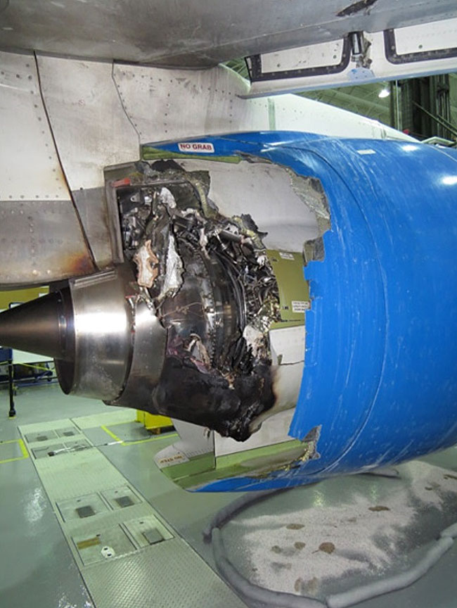 - La défaillance du rotor de la turbine basse pression était non confinée et a causé des dommages importants au moteur, au fuseau moteur et à l'aile.
