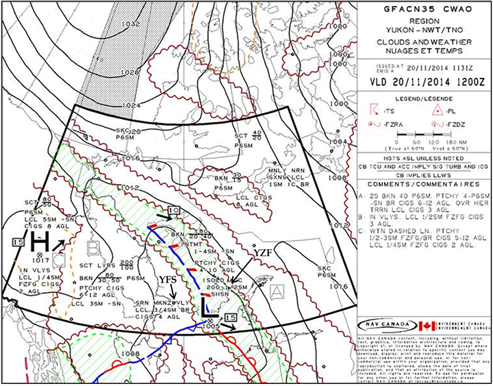 Annexe E – Messages d'observation météorologique régulière pour l'aviation (METAR) et prévisions d'aérodrome (TAF) pour Yellowknife (CYZF)