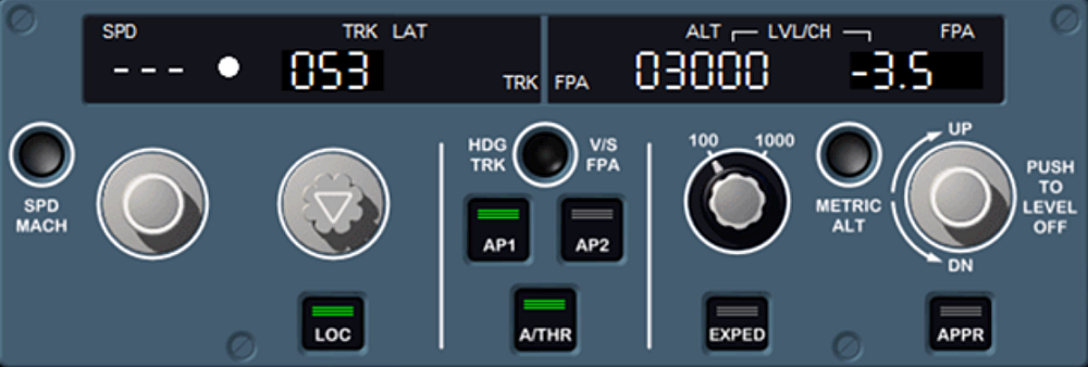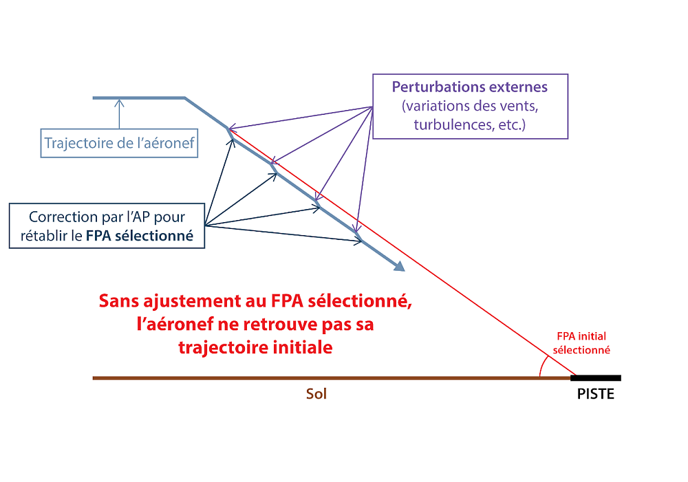 À environ 2,7 nm du FAF, le PC a sélectionné le mode FPA au moyen du bouton vitesse verticale/angle de trajectoire de vol (V/S-FPA) du module de commande de vol; l'aéronef naviguait désormais avec un FPA réglé à 0,0°Note de bas de page 16.