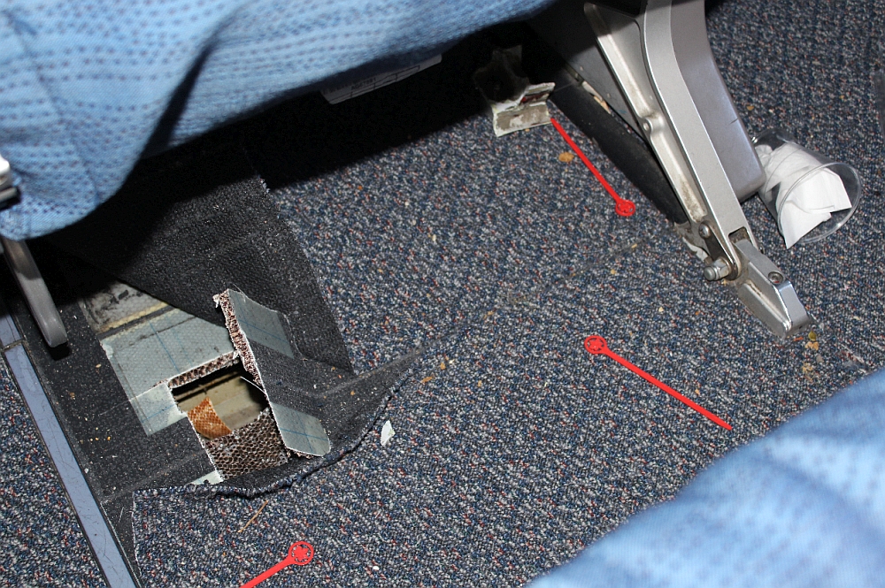 La cabine de l'aéronef comptait 5 sièges de service escamotables pour agents de bord. Deux d'entre eux, faisant face à l'arrière et fixés à la paroi de la cabine, étaient situés à la porte L1; un autre, faisant face à l'avant et fixé à la cloison, se trouvait à l'arrière du couloir; et 2 autres, faisant face à l'arrière et fixés à la paroi de la cabine, étaient situés de part et d'autre de l'office arrière.