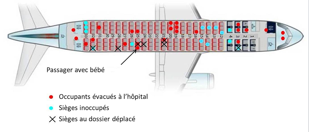 Le premier agent de bord, qui occupait le siège de service faisant face à l'arrière à la porte L2, comptait 5 années d'expérience et avait suivi l'ART en avril 2014.