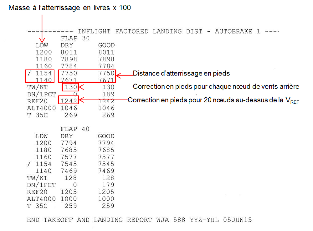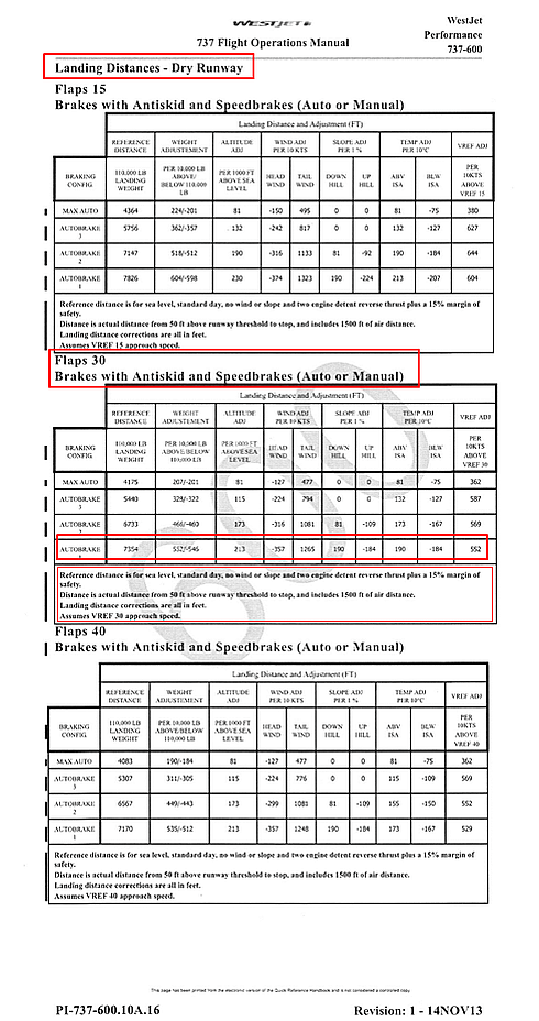 Pour déterminer le réglage de freinage automatique le mieux adapté à la longueur de piste disponible, l'équipage peut [traduction] « se servir des données sur la distance d'atterrissage du système embarqué de communications, d'adressage et de compte rendu (ACARS), du rapport de décollage et d'atterrissage (RDA) ou des tableaux de distances d'atterrissage dans le manuel de référence rapide (QRH)Note de bas de page 16 ».