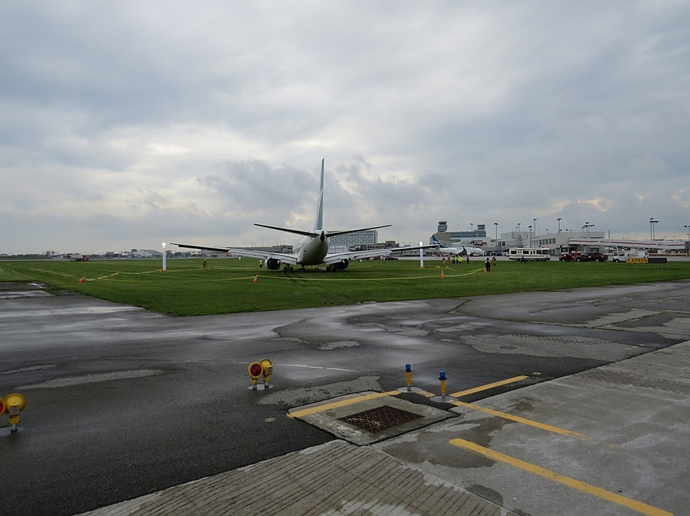 Le 5 juin 2015, un Boeing 737-6CT de WestJet (immatriculé C-GWCT, numéro de série 35112) effectuait le vol régulier 588 en provenance de l'aéroport international Lester B. Pearson de Toronto (Ontario) à destination de l'Aéroport international Pierre-Elliott-Trudeau de Montréal (Québec). À 14 h 57, heure avancée de l'Est, l'aéronef s'est posé sous de fortes averses de pluie à environ 2550 pieds au-delà du seuil de la piste 24L et ne s'est pas arrêté avant d'atteindre l'extrémité de la piste. L'aéronef a quitté la surface revêtue à une vitesse sol d'environ 39 nœuds et s'est immobilisé dans l'herbe, à environ 200 pieds au-delà de la piste. Aucun des 107 passagers et des 5 membres d'équipage n'a été blessé, et l'aéronef n'a subi aucun dommage. La radiobalise de repérage d'urgence de 406 mégahertz ne s'est pas déclenchée. L'incident s'est produit de jour, à 14 h 58.