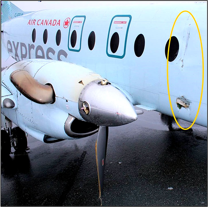 - Si les pales d'une hélice en matériau composite heurtent un objet et se rompent, puis heurtent ou pénètrent la cabine, il y a un risque de blessure ou de mort pour les personnes prenant place dans le plan de rotation des hélices.