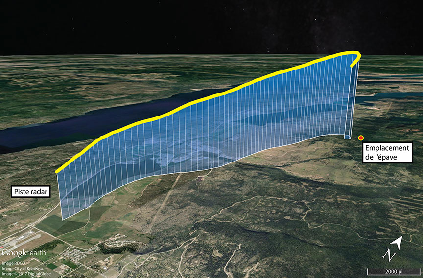 Vue aérienne de la trajectoire de vol du C-GTNG