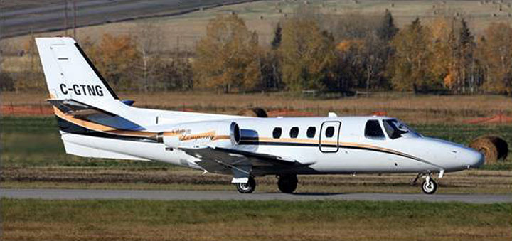 Le C500 (figure 4) est un aéronef d'affaires à cabine pressurisée et à turboréacteur à double flux. Son altitude d'exploitation maximale est de 35 000 pieds asl et il est muni d'un train d'atterrissage escamotable. L'aéronef à l'étude était approuvé pour les vols de jour et de nuit selon les règles de vol à vue (VFR) et aux instruments (IFR), et il était certifié pour le vol dans des conditions givrantes connues. Le C-GTNG était également muni d'un pilote automatique (Bendix FSG-70) et d'un indicateur d'angle d'attaque.