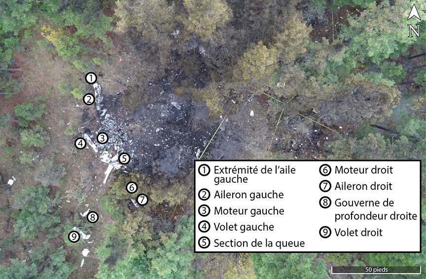 3. Étant donné que tous les composants de l'aéronef ont été retrouvés au site de l'épave, les enquêteurs ont établi qu'il n'y avait eu ni désintégration ni séparation de l'aile en vol.