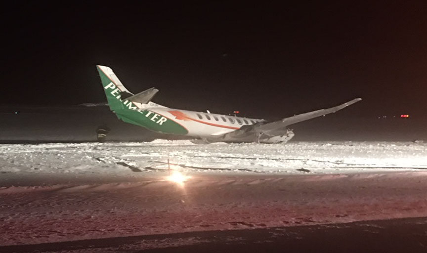 Le 2 novembre 2017, un aéronef Fairchild SA227-AC Metro III (numéro de série AC-756B, immatriculé C-FLRY) de Perimeter Aviation LP effectuait le vol 959 (PAG959) à partir de l’aéroport de Gods River (Manitoba) en direction de l’aéroport de Thompson (Manitoba), avec 2 membres d’équipage à bord. Alors que l’aéronef se trouvait à environ 40 milles marins au sud-est de l’aéroport de Thompson, l’équipage a informé le contrôle de la circulation aérienne qu’il avait reçu une indication de faible pression d’huile du moteur gauche et qu’il allait peut-être devoir arrêter ce moteur. L’équipage n’a pas déclaré de situation d’urgence, mais les services de sauvetage et de lutte contre les incendies d’aéronefs ont été mis en état d’alerte. Après le poser des roues sur la piste 24 avec les 2 moteurs en marche, l’aéronef a soudainement viré à droite et a quitté la piste. L’aéronef s’est immobilisé dans la neige au nord de la piste. La commandante et le premier officier sont sortis de l’aéronef par l’issue de secours de l’aile gauche et, ayant subi des blessures mineures, ils ont été transportés à l’hôpital. L’aéronef a subi d’importants dommages. La radiobalise de repérage d’urgence de 406 MHz ne s’est pas déclenchée. L’événement est survenu à la noirceur, à 19 h 20 (heure avancée du Centre).