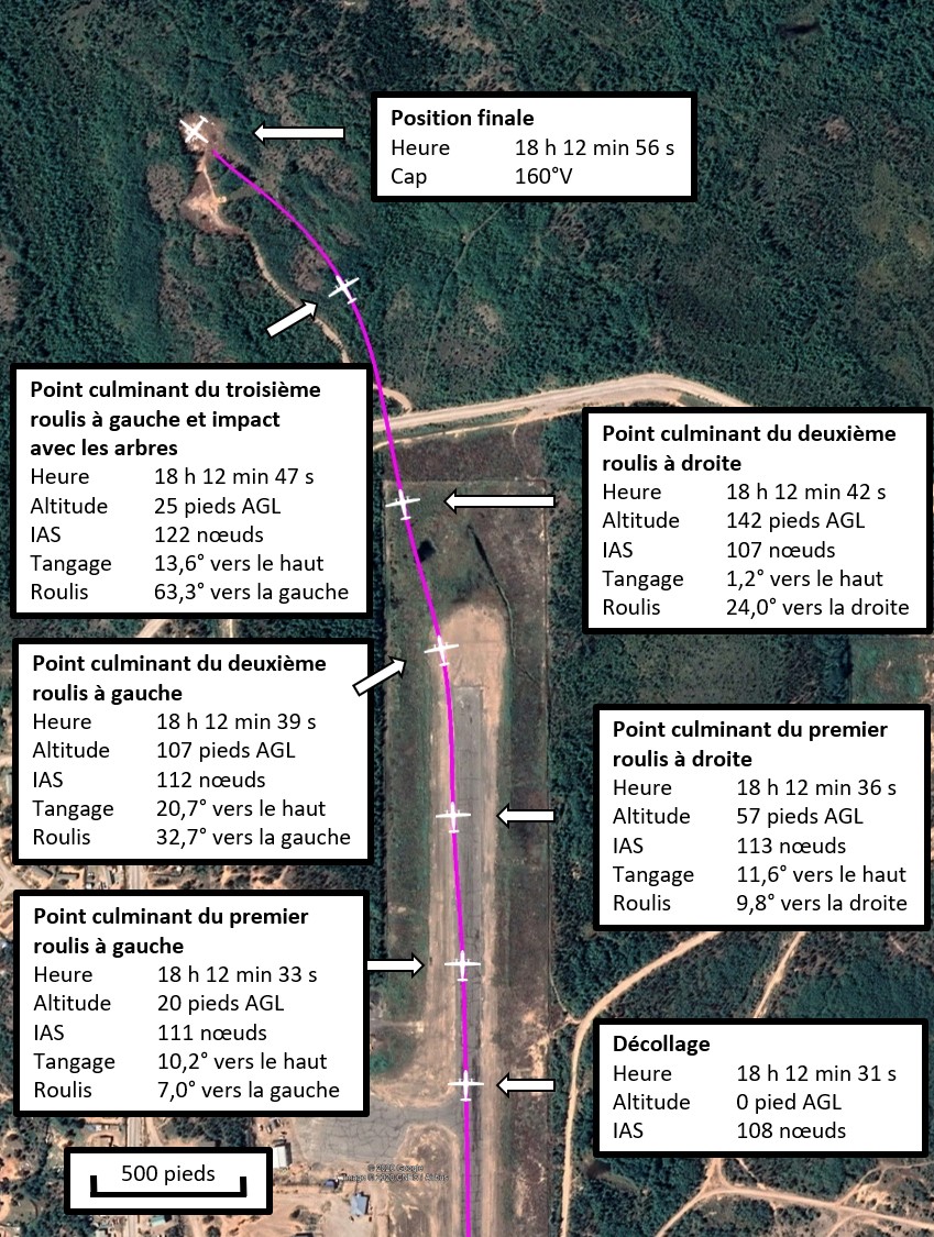 Cette perte de maîtrise dans l’axe de roulis, qui correspond aux risques connus associés au décollage avec une contamination par la glace, a en fin de compte entraîné la collision de l’aéronef avec le relief 17 secondes après le décollage.