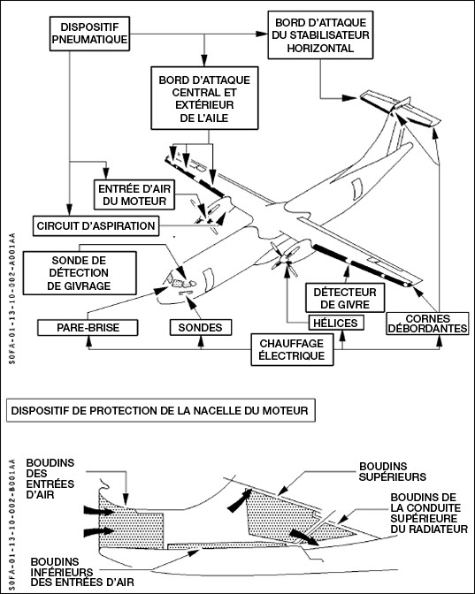 Même si les systèmes de protection contre le givrage de l’aéronef ont été activés à l’approche de CZFD, les boudins de dégivrage de l’aéronef n’ont pas été conçus pour éliminer toute la glace qui peut s’accumuler, et les systèmes d’antigivrage n’ont pas empêché l’accumulation de glace sur les surfaces non protégées. Par conséquent, de la glace résiduelle a commencé à s’accumuler sur l’aéronef.