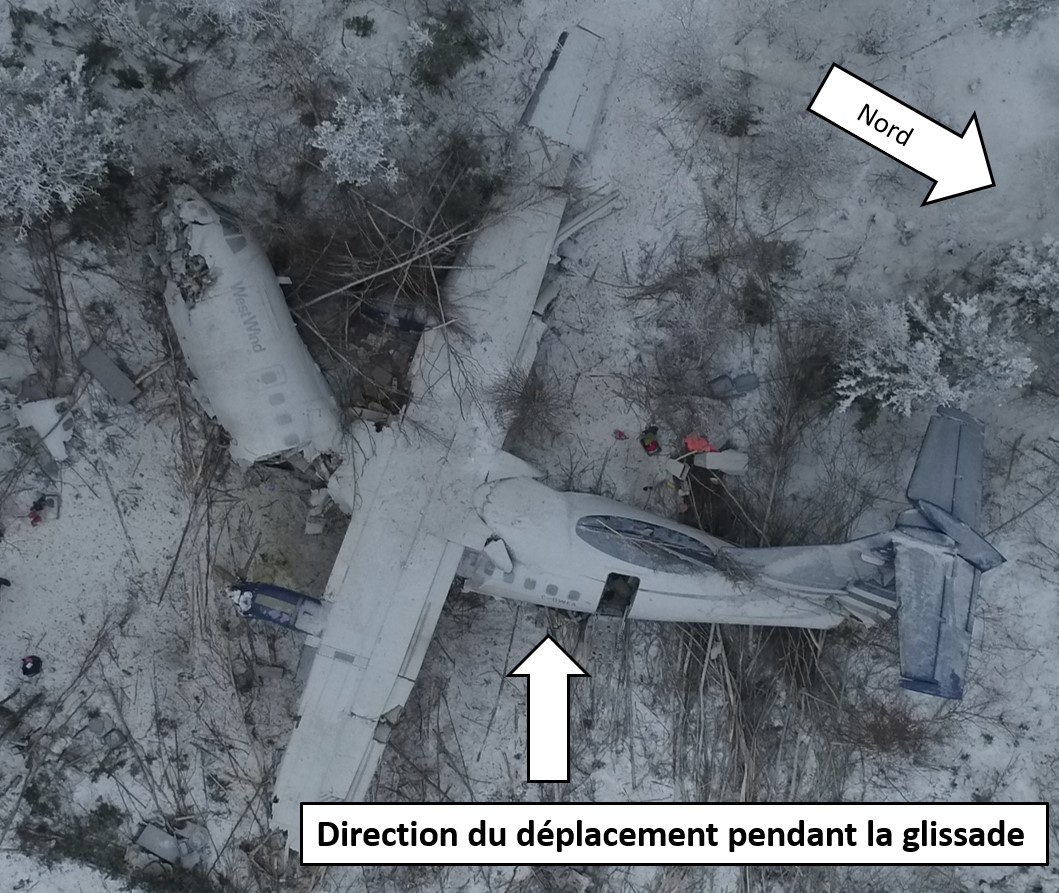 Le vol WEW282 est parti de l’aéroport international John G. Diefenbaker de Saskatoon (CYXE) et est arrivé à l’aéroport de Prince Albert (Glass Field) (CYPA) sans difficulté. Après un arrêt d’environ 1 heure, le vol est reparti vers l’aéroport de Fond-du-Lac (CZFD). À l’approche de l’aéroport de Fond-du-Lac, l’aéronef a commencé à givrer en vol, et l’équipage a activé les systèmes d’antigivrage et de dégivrage.