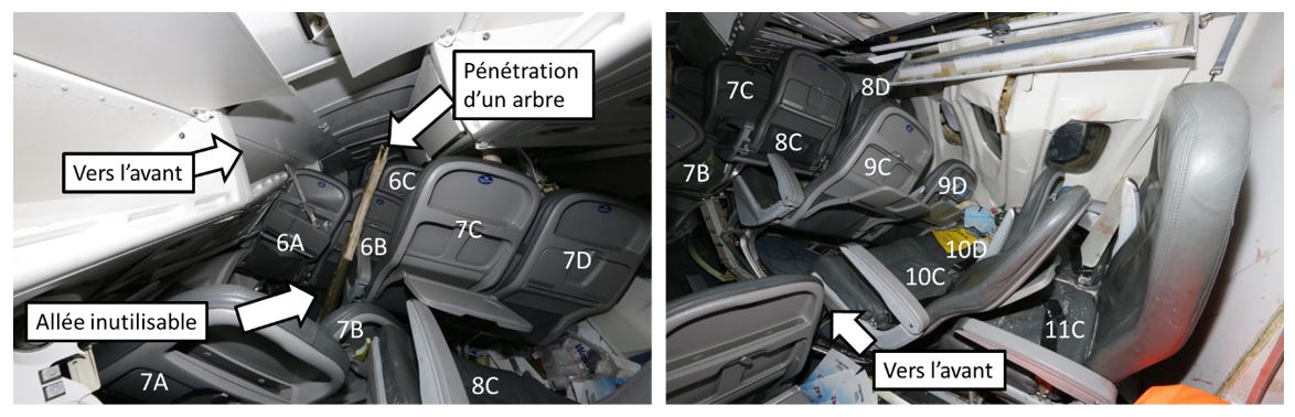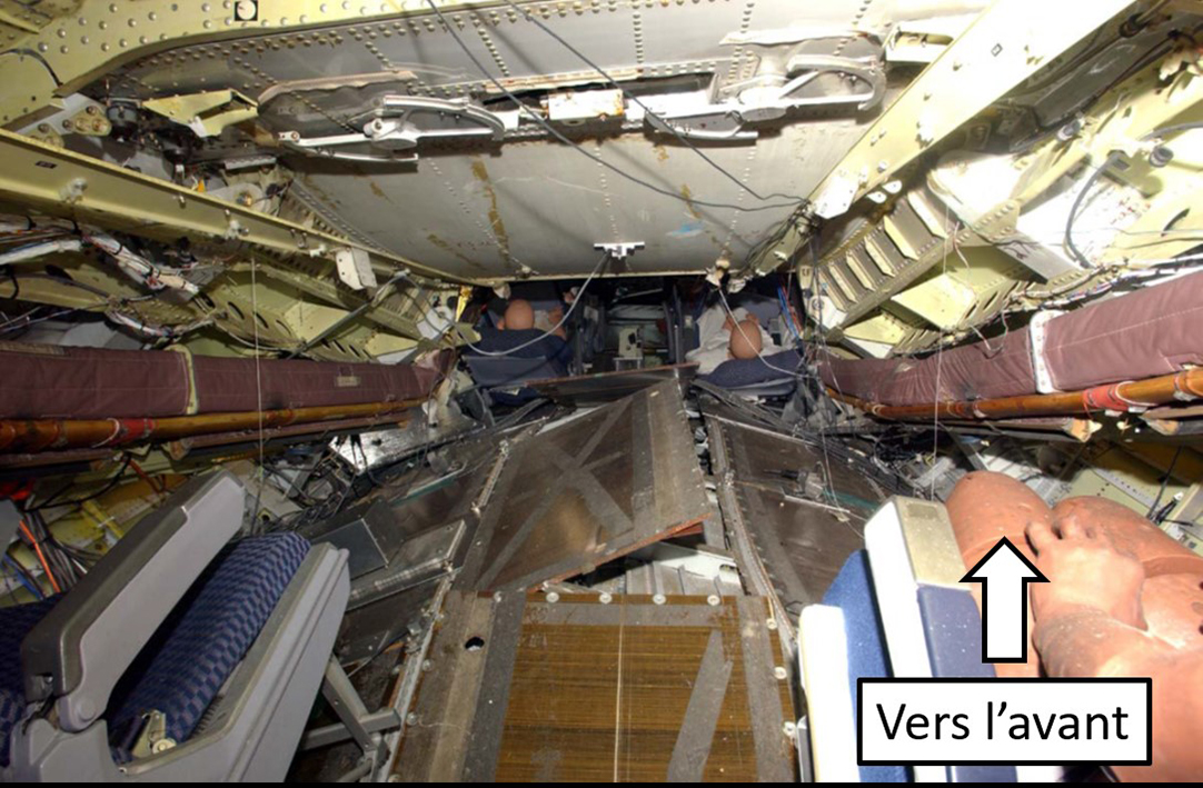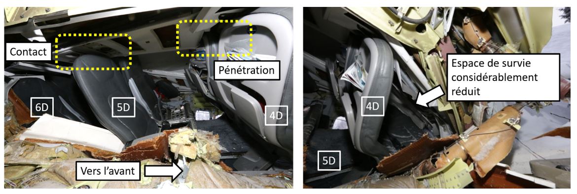 Le soulèvement d’une partie de la structure du plancher a compromis les ensembles de retenue, limitant ainsi la protection offerte aux occupants pendant qu’ils étaient soumis à des forces verticales, longitudinales et latérales. Cela s’est traduit par de graves blessures liées à la vitesse et par des entraves à la capacité des passagers de prendre des mesures de survie en temps opportun après l’écrasement.