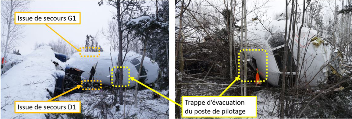 Il n’y a pas eu d’incendie après l’impact et la radiobalise de repérage d’urgence s’est activée au moment de l’impact.