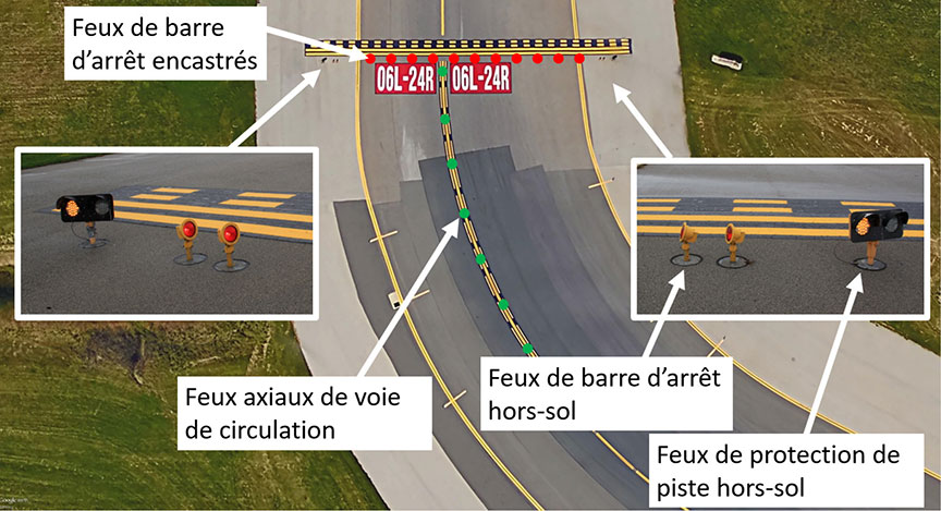 - des solutions techniques modernes sont adoptées, comme des aides électroniques à la conscience situationnelle dans le poste de pilotage, et des avertissements directs aux pilotes, comme des feux indicateurs de l'état des pistes.