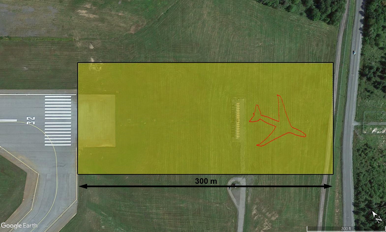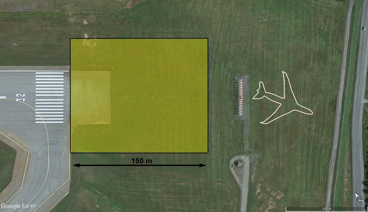 le ministère des Transports exige que toutes les pistes de code 4 soient pourvues d’une aire de sécurité d’extrémité de piste (RESA) de 300 m ou d’un autre moyen d’immobilisation des aéronefs offrant un niveau de sécurité équivalent.
