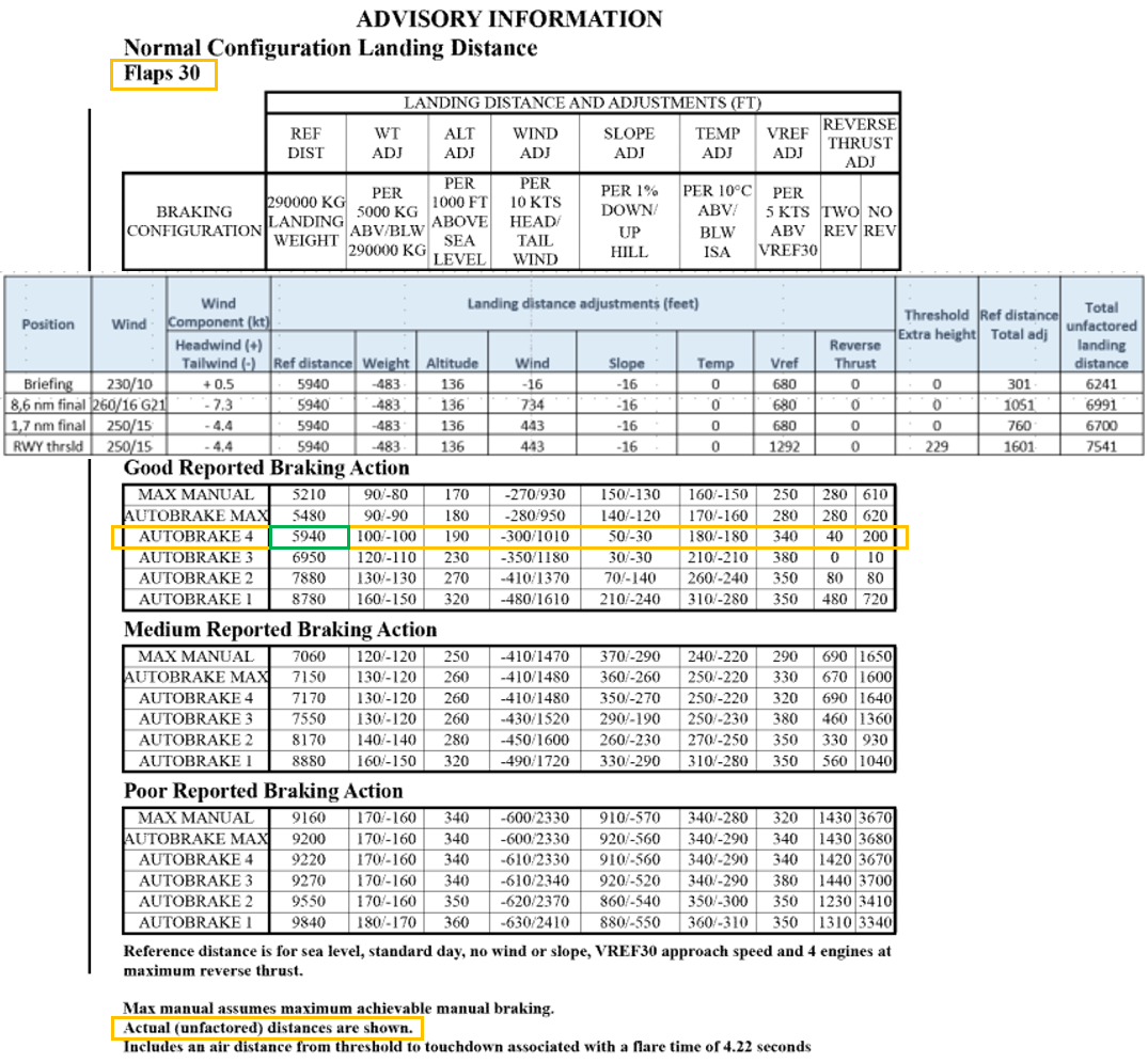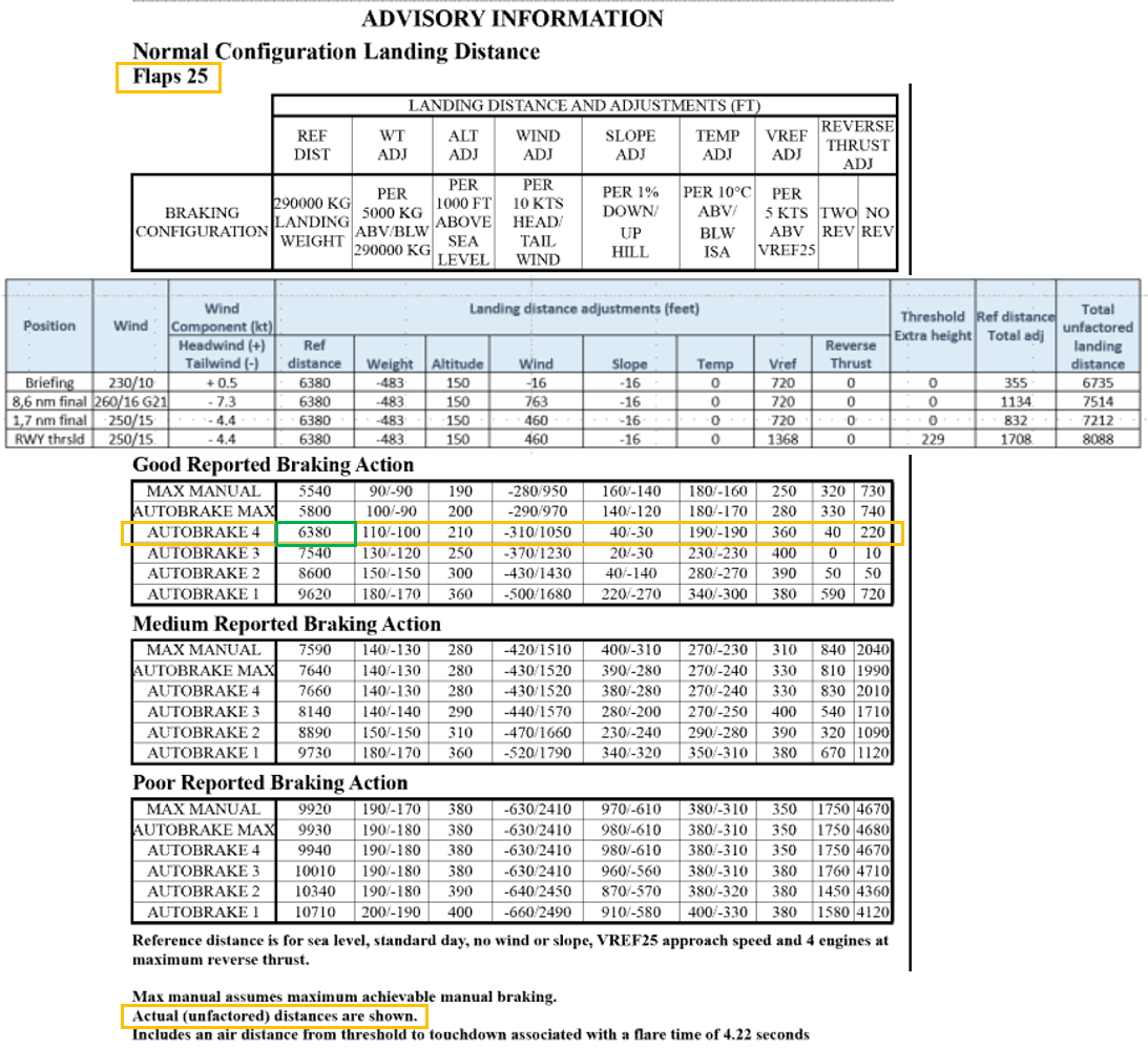 La planification avant vol comprenait la préparation du devis de masse et centrage qui indiquait les pistes de départ et d’arrivée. La section de ce devis relative à la masse brute maximale autorisée à l’atterrissage indiquait 302 092 kg et volets à 25° pour un atterrissage sur la piste 23, d’une longueur de 10 500 pieds (3200 m). Cependant, après avoir examiné les conditions météorologiques et les NOTAM, l’équipage prévoyait atterrir sur la piste 14, d’une longueur de 7700 pieds (2347 m). Après son arrivée à KORD, l’équipage a rencontré des membres du personnel de maintenance qui ont fait le point sur les travaux effectués sur l’aéronef à KORD.