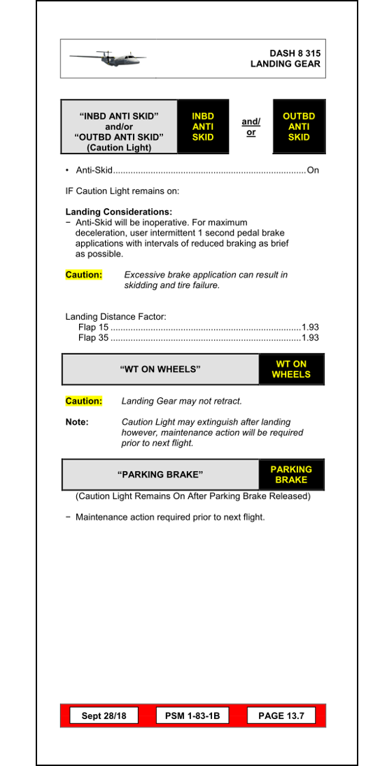 Source : PAL Airlines Ltd., Dash 8 Quick Reference Handbook, DASH 8 315, révision 31 (décembre 2018).
