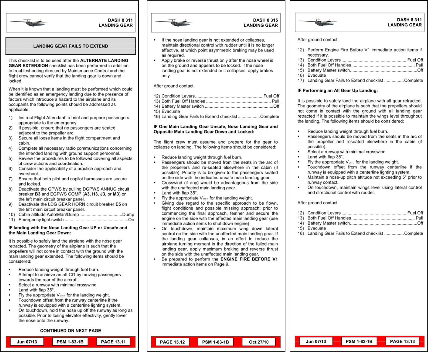 Annexe C – Manuel de référence rapide pour l’avion Dash 8 – train d’atterrissage qui refuse de sortir