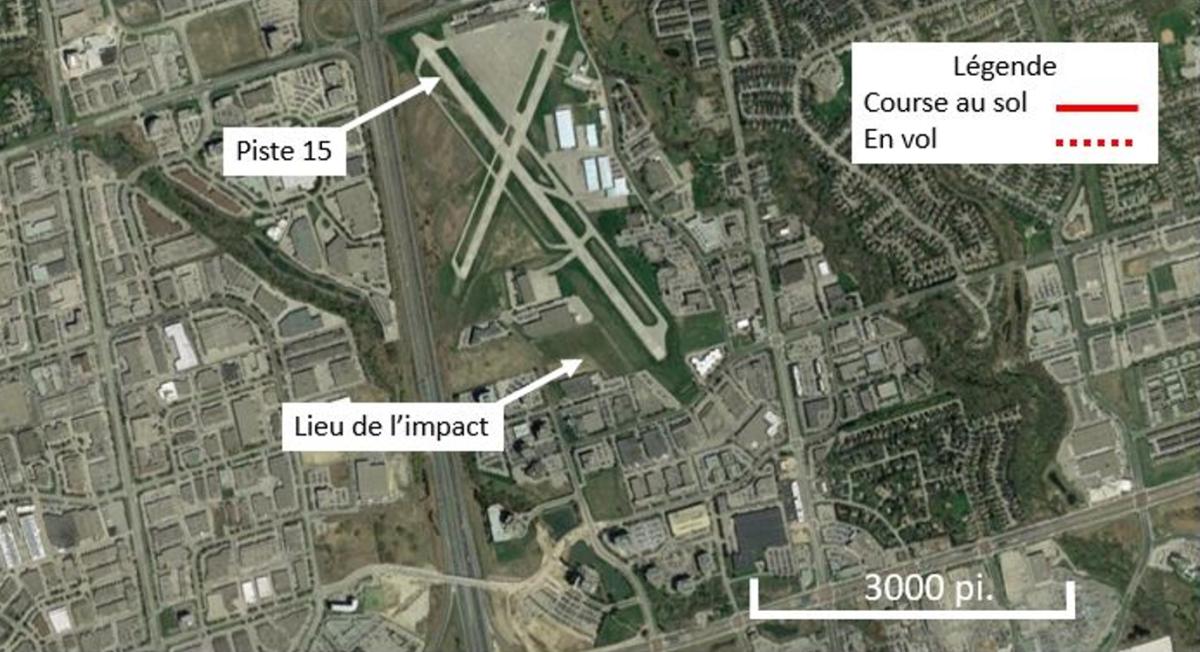 L'aéroport CYKZ se trouve dans une zone bâtie et il est entouré d'immeubles résidentiels et commerciaux (figure 1). Lorsqu'un aéronef décolle de la piste 15, il y a très peu d'endroits convenables où le pilote peut réussir un atterrissage forcé en cas d'urgence.