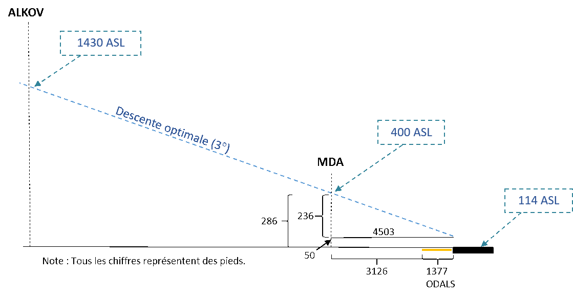 - Si les pilotes poursuivent une approche sous l’altitude minimale de descente avec une seule référence visuelle, ils risquent de continuer l’atterrissage alors qu’ils n’ont pas acquis les références visuelles supplémentaires requises pour atterrir en toute sécurité.