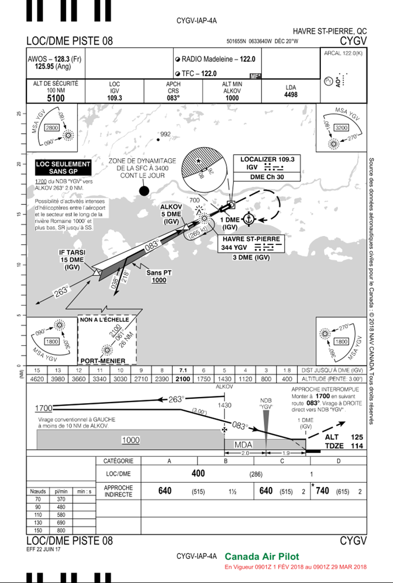 Annexe A – Carte d’approche LOC/DME PISTE 08 à l’aéroport de Havre St-Pierre (À ne pas utiliser pour la navigation)