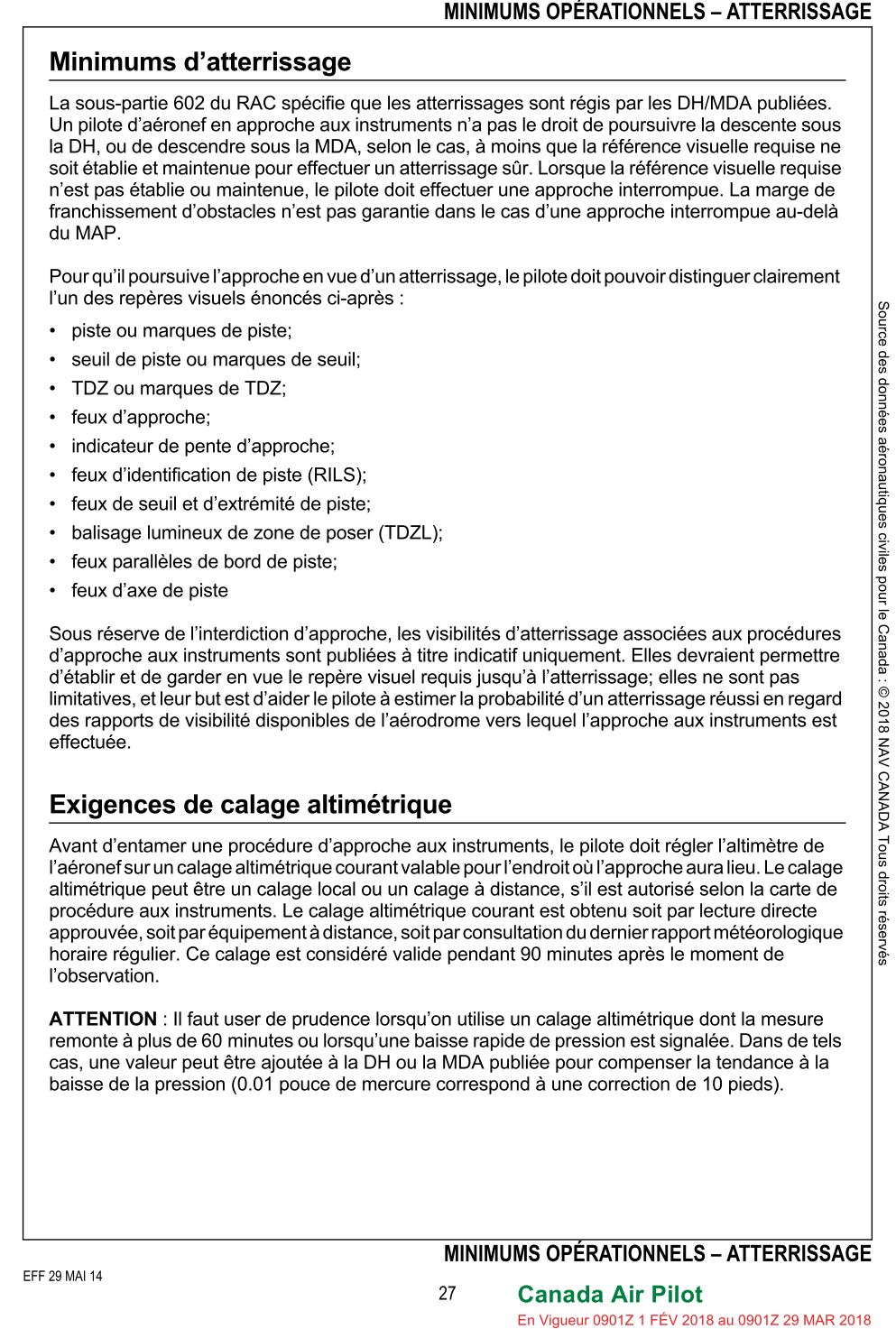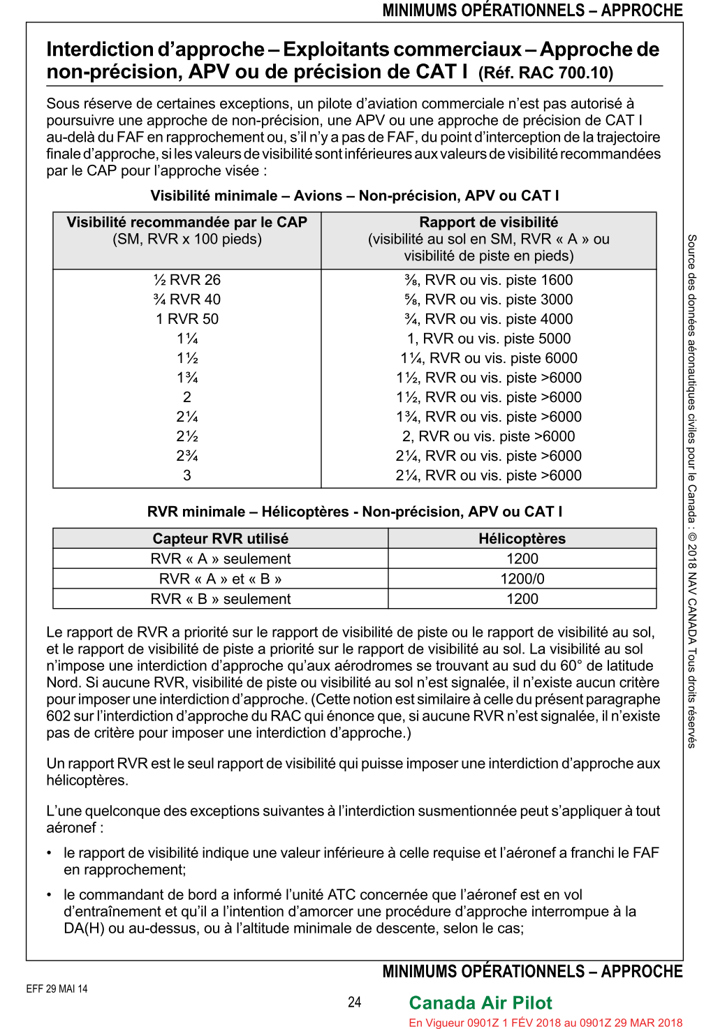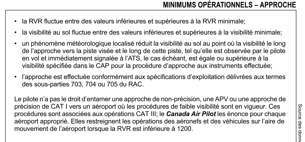 Toutefois, au Canada, les visibilités publiées sur les cartes d’approche sont données à titre indicatif seulement.