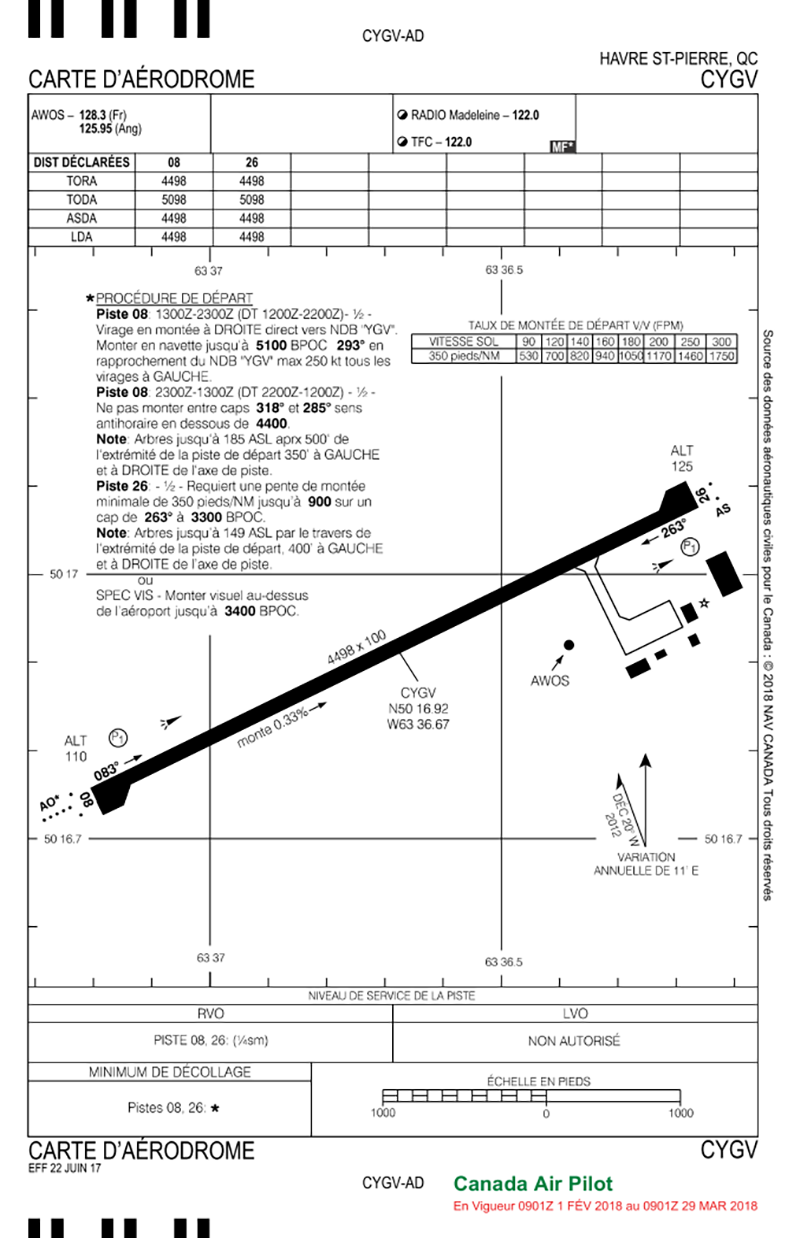 Annexe G – Carte d’aérodrome de l’aéroport de Havre St-Pierre (À ne pas utiliser pour la navigation)