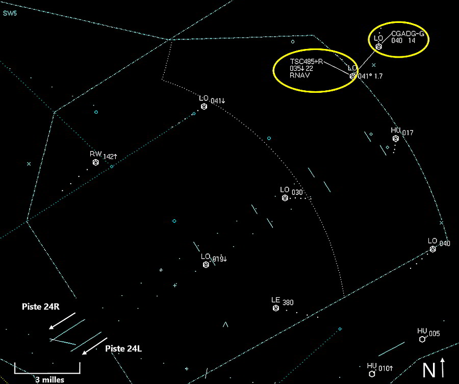 À 19 h 01 min 58 s, le contrôleur stagiaire LO a ordonné à l'Airbus de virer à droite sur un cap de 210° et l'a autorisé à effectuer une approche ILS vers la piste 24R (annexe C). L'aéronef s'est posé sans incident.