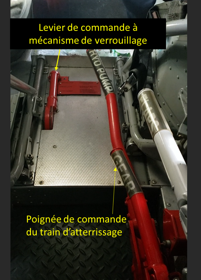 Toutefois, sur ce type d’aéronef, la disposition des interrupteurs et des commutateurs dans le poste de pilotage et l’emplacement des commandes (comme la poignée de commande du train d’atterrissage) peuvent faire en sorte qu’il soit difficile pour les pilotes portant une ceinture-baudrier d’atteindre les commandes du train d’atterrissage. Pourtant, si les pilotes ne portent pas les ceintures-baudriers à bord, il y a risque accru de blessures en cas d’accident.