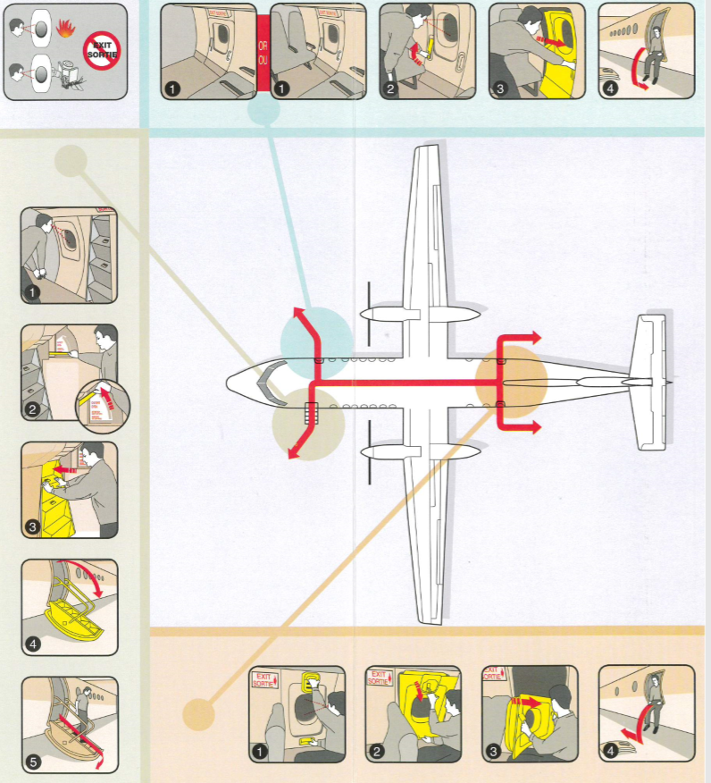 - Si les passagers ne se familiarisent pas avec la carte de consignes propres à l’aéronef dans lequel ils voyagent, ils peuvent ne pas savoir comment utiliser correctement l’issue de secours, ce qui augmente le risque de blessure.