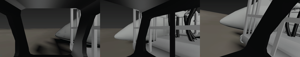 L’analyse a révélé qu’en raison de l’emplacement de la plate-forme de service élévatrice et de ses accessoires, aucune partie de l’aéronef n’aurait été visible pour le conducteur jusqu’à environ 3 secondes avant la collision, et seulement si le conducteur avait été penché vers l’avant avec le regard tourné vers la droite (figure 11 et figure 12).