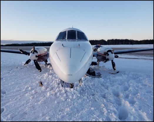 L’aéronef de l’événement à l’étude a subi des dommages importants aux hélices et au fuselage. Le train d’atterrissage était intact, et le personnel de l’aéroport a pu extirper l’aéronef de la neige et le remorquer vers une aire de trafic dans les environs.