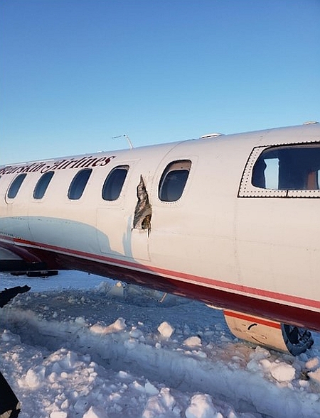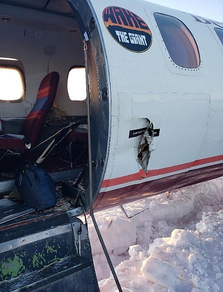 Même si les panneaux de renforcement sur les côtés du fuselage sont conçus pour résister aux impacts de la glace, ils n’ont pas été conçus pour empêcher la pénétration de débris d’hélice.