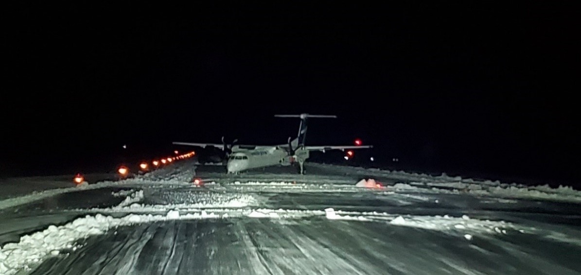 L’approche et l’atterrissage ont eu lieu de nuit sur une piste recouverte de neige, dans des conditions de visibilité limitée en raison d’une chute de neige et de vents dont la vitesse et la direction variaient.