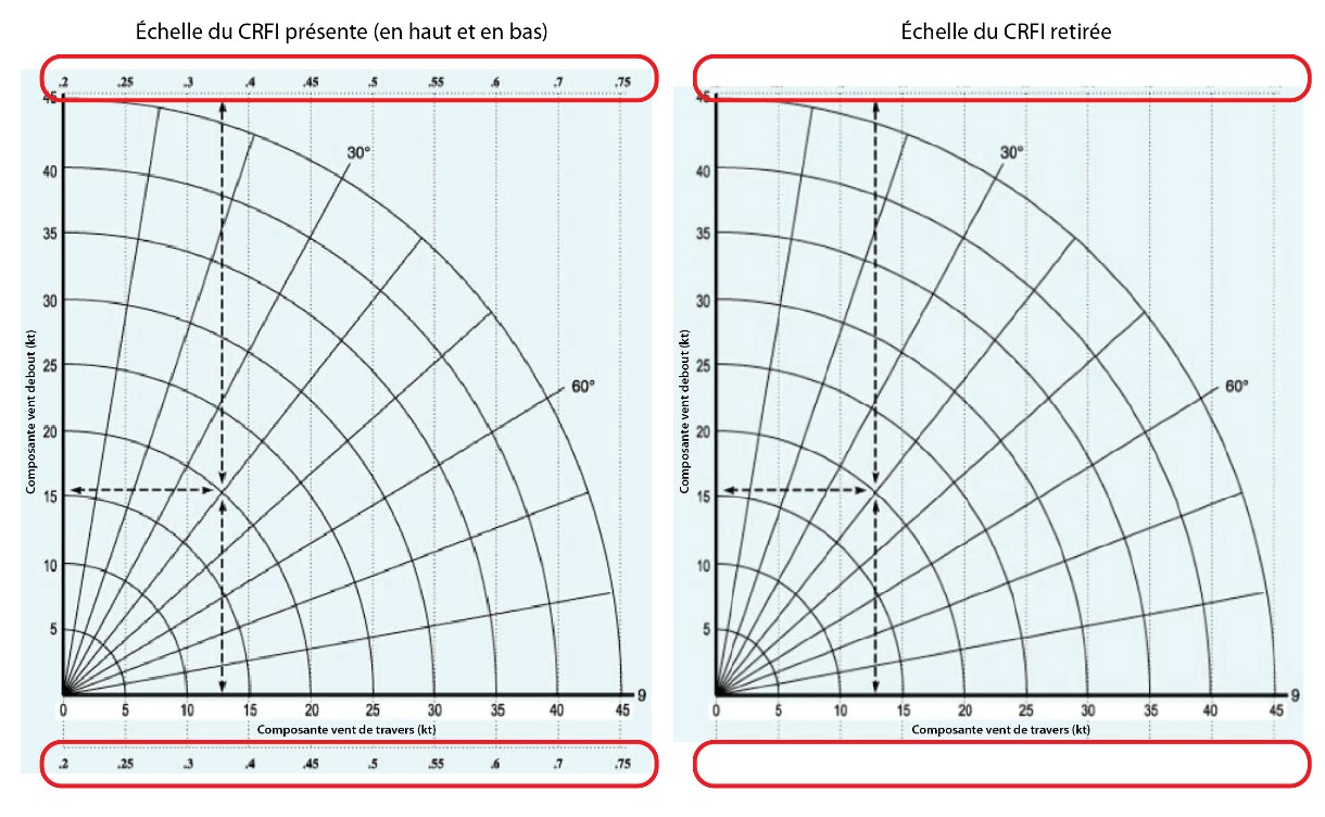 L’équipage de conduite cherchait plus d’information sur le CRFI dans l’AOM lorsque, à 20 h 42, le contrôleur du centre lui a indiqué que la valeur CRFI avait augmenté à 0,15. Le commandant de bord s’est alors rendu compte que la référence au CRFI avait été supprimée du diagramme des composantes de vent de travers du manuel des opérations hivernalesNote de bas de page 12.