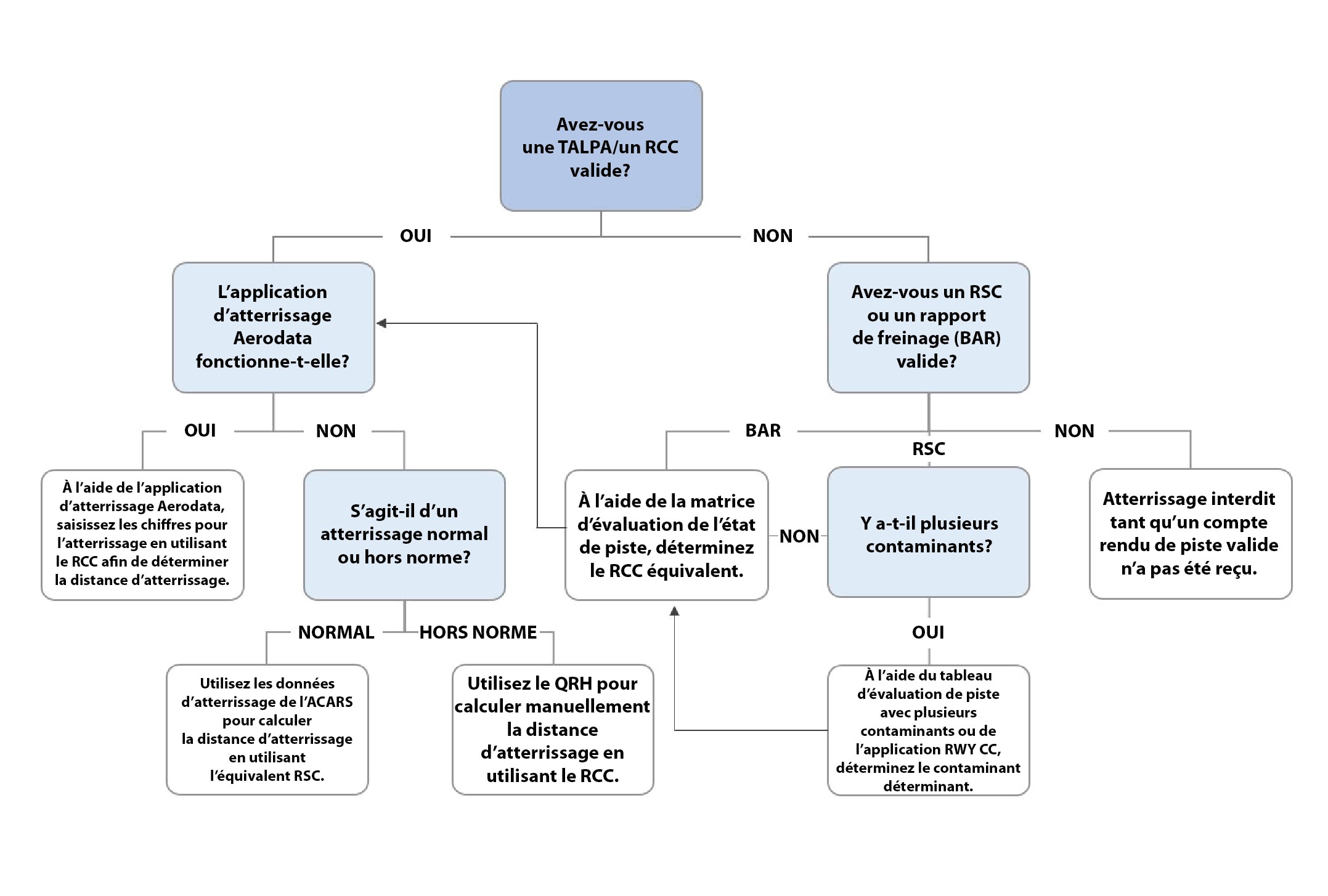 À 20 h 43, l’équipage de conduite a reçu un message ACARS du service de régulation des vols de WestJet Encore lui indiquant d’attendre et l’informant qu’il allait appeler le personnel aéroportuaire de CYXT. Le commandant de bord a ensuite examiné le diagramme « Procedure for Landing on Contaminated Runways » (procédure d’atterrissage sur pistes contaminées) (annexe B)Note de bas de page 13. L’équipage de conduite a également constaté que le CRFI s’était amélioré et que le vent de travers était minimal.
