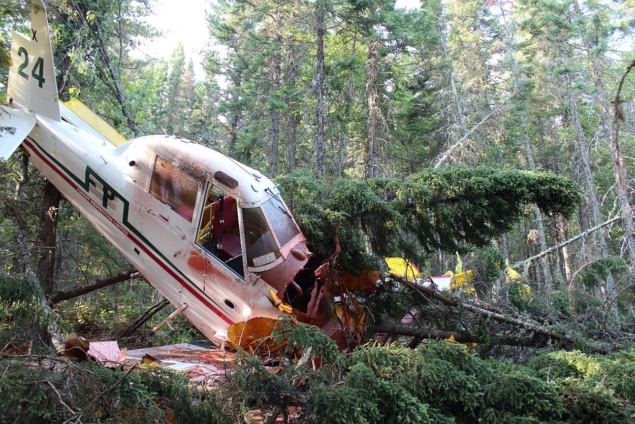 L’aéronef s’était écrasé sur un versant abrupt (sur une pente d’environ 25°) densément boisé de conifères. Le lieu de l’écrasement était difficile à voir du haut des airs, sauf si l’équipage du Bird Dog se trouvait directement au-dessus de la scène.